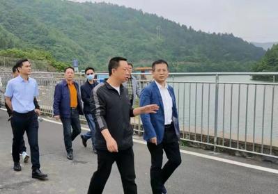 ▲圖為衡陽市鄉(xiāng)村振興局黨組書記、局長王蘇龍(右一)實地察看鐵塘橋水庫開展防汛備汛工作情況